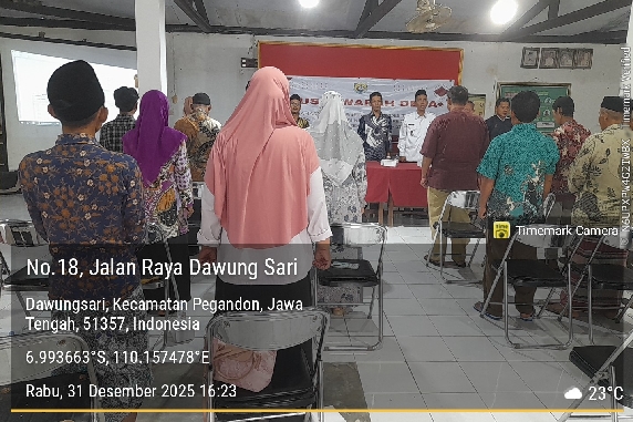 MUSDES PENETAPAN APBDES TAHUN 2026 DESA DAWUNGSARI BERLANGSUNG SORE SEKITAR PUKUL 15.30 WIB DIAULA BALAIDESA DAWUNGSARI.